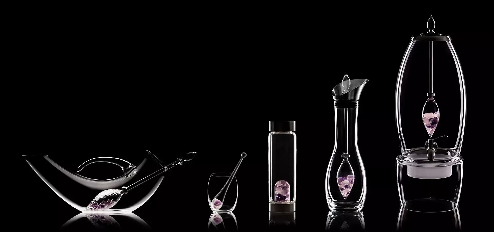 Продукты Vitajuwel внутри стеклянного сосуда содержат камни, оказывающие уникальное влияние на воду. Главная особенность таких бутылок – каждая изготавливается вручную богемскими мастерами-стеклодувами, использующими уникальную запатентованную технологию. В комплекте к бутылке идет фиал, наполненный драгоценными камнями, подобранными согласно древним медицинским учениям.